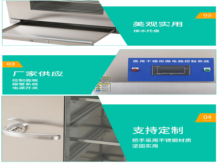 5、设备具有超温保护、过压保护、漏电保护,保证的使用安全。干燥柜配有专业的接水盘,是多余的水流入水盘直接到出即可。